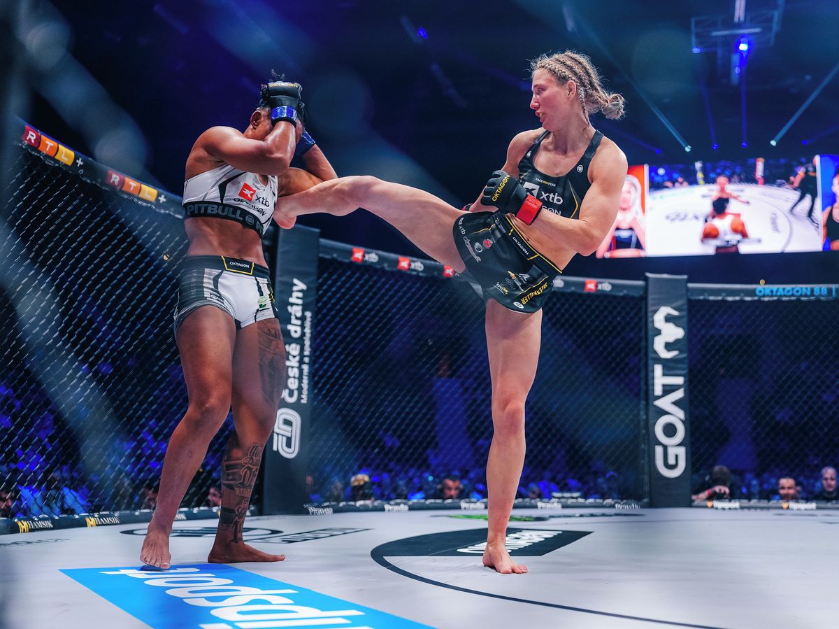 Zlatou tečku obstarala neporažená osmadvacetiletá Slovenka Lucia Szabová, která předvedla další dominantní výkon a stala se historicky první dvojnásobnou šampionkou Oktagonu. Brazilku Fernandesovou dobila ve třetím kole koleny a lokty.
