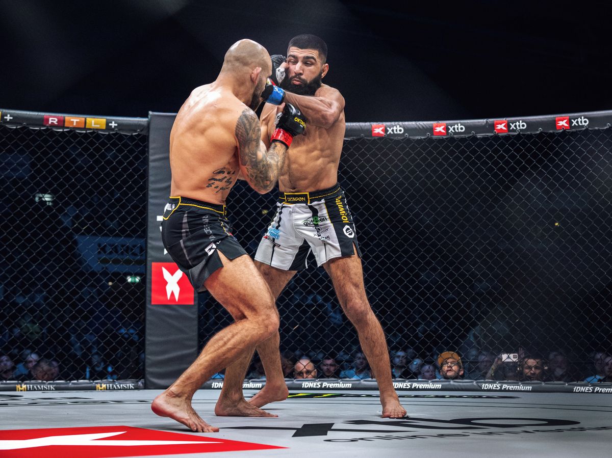 Novým šampionem pérové váhy Rakušan Mago Machaev. Za 107 sekund vyřídil SamsonidsehoVideo: OKTAGON TV