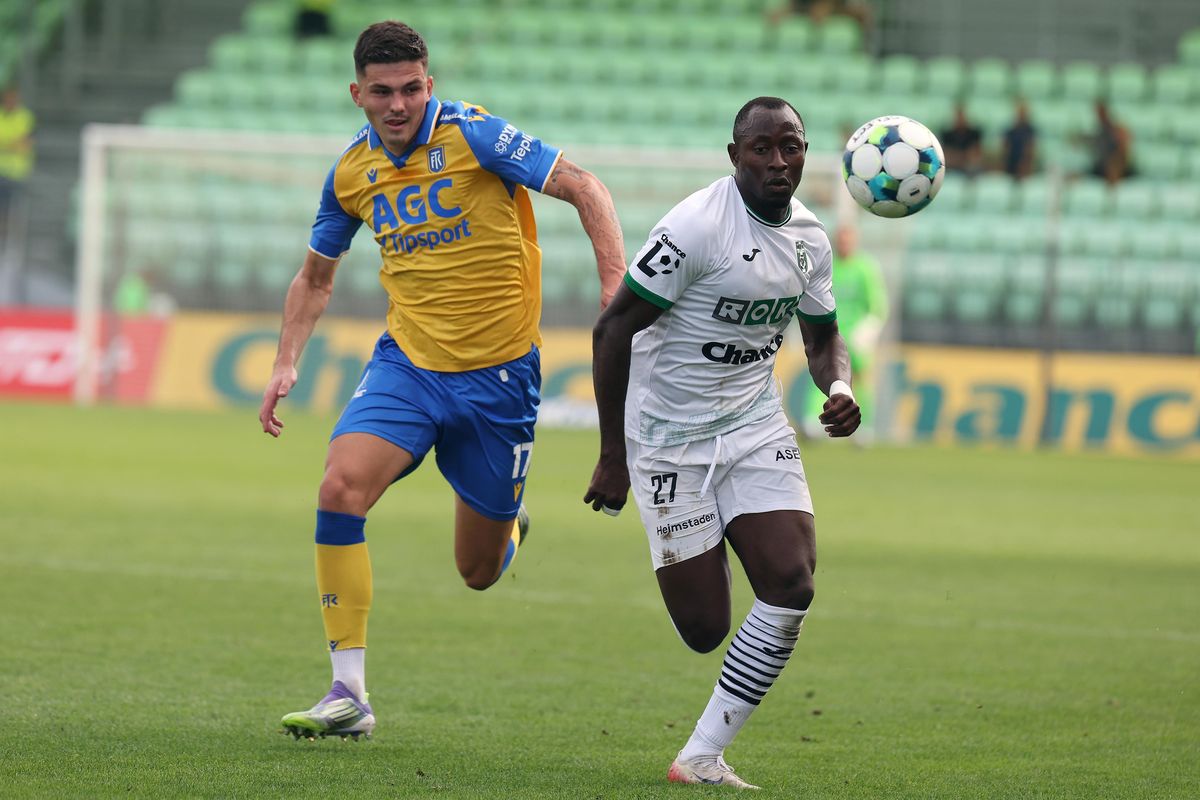 Zleva Denis Halinský z Teplic a Ebrima Singhateh z Karviné.