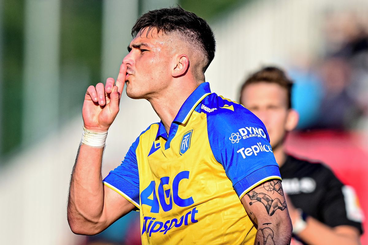 Střelec pardubického gólu Vojtěch Patrák v duelu s Teplicemi.