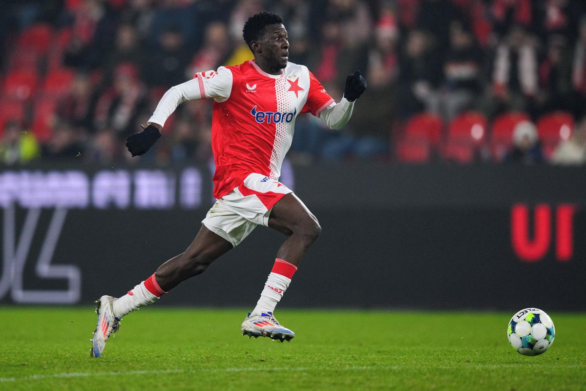 Mubarak Suleiman ze Slavie během utkání s Mladou Boleslaví.