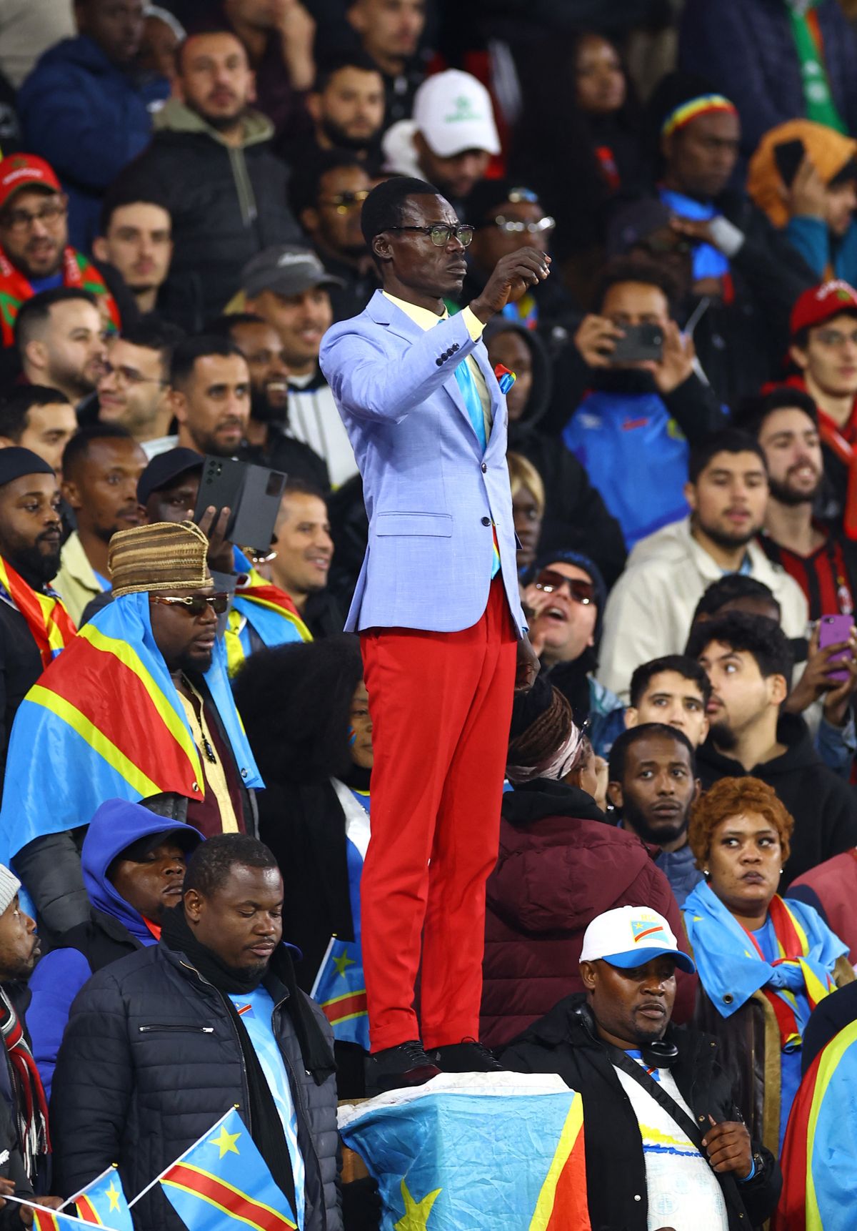 Nehybný jako socha trávil zápasy fanoušek týmu DR Kongo Michel Kuka Mboladinga na africkém šampionátu v Maroku.