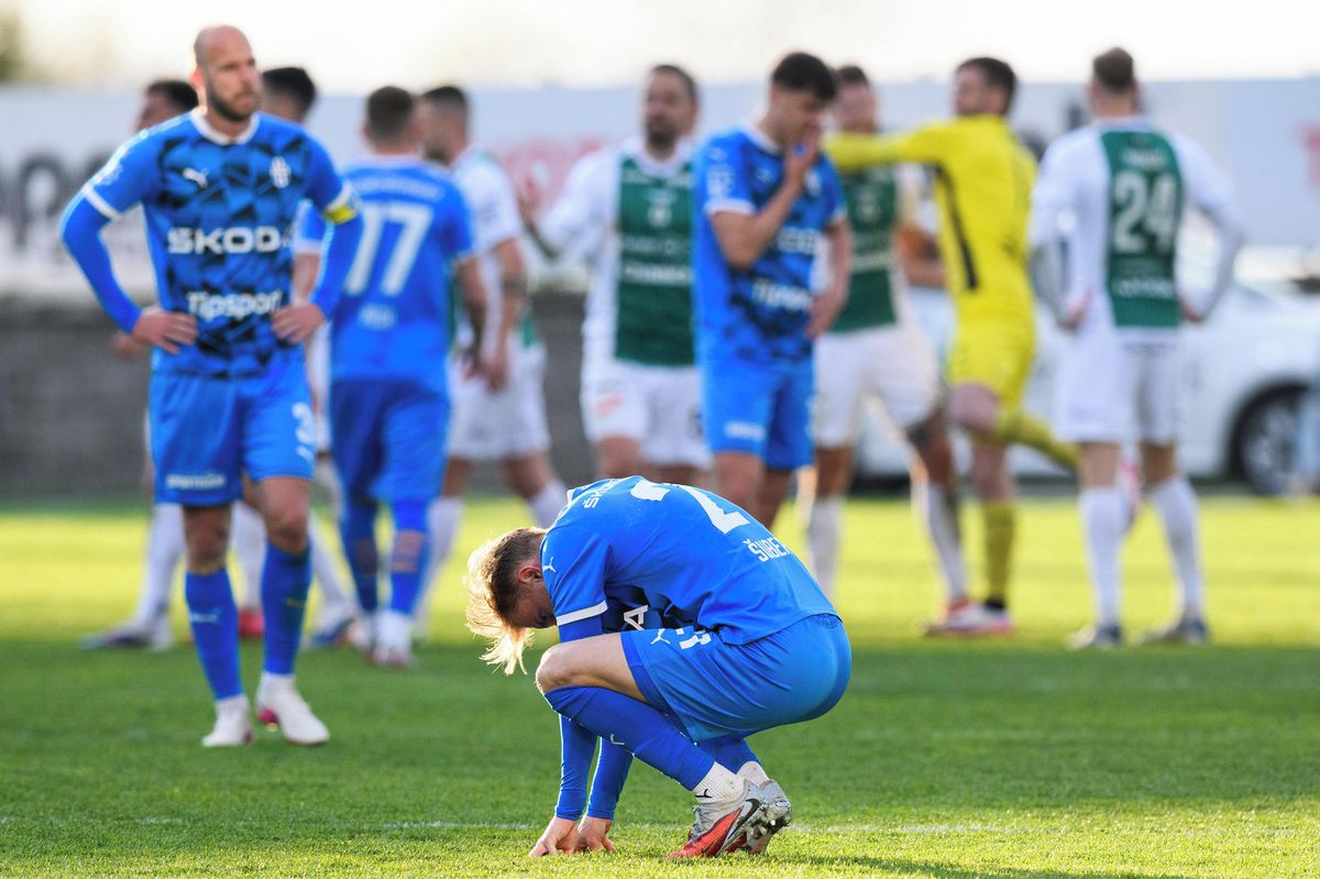 Zklamaní hráči Mladé Boleslavi po vyřazení z domácího poháru.