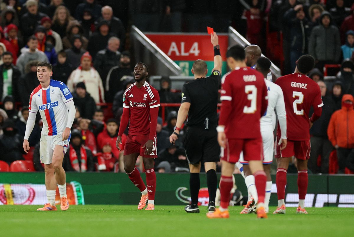 Stoper Liverpoolu Amara Nallo byl v Ligovém poháru proti Crystal Palace vyloučen po 12 minutách na hřišti.
