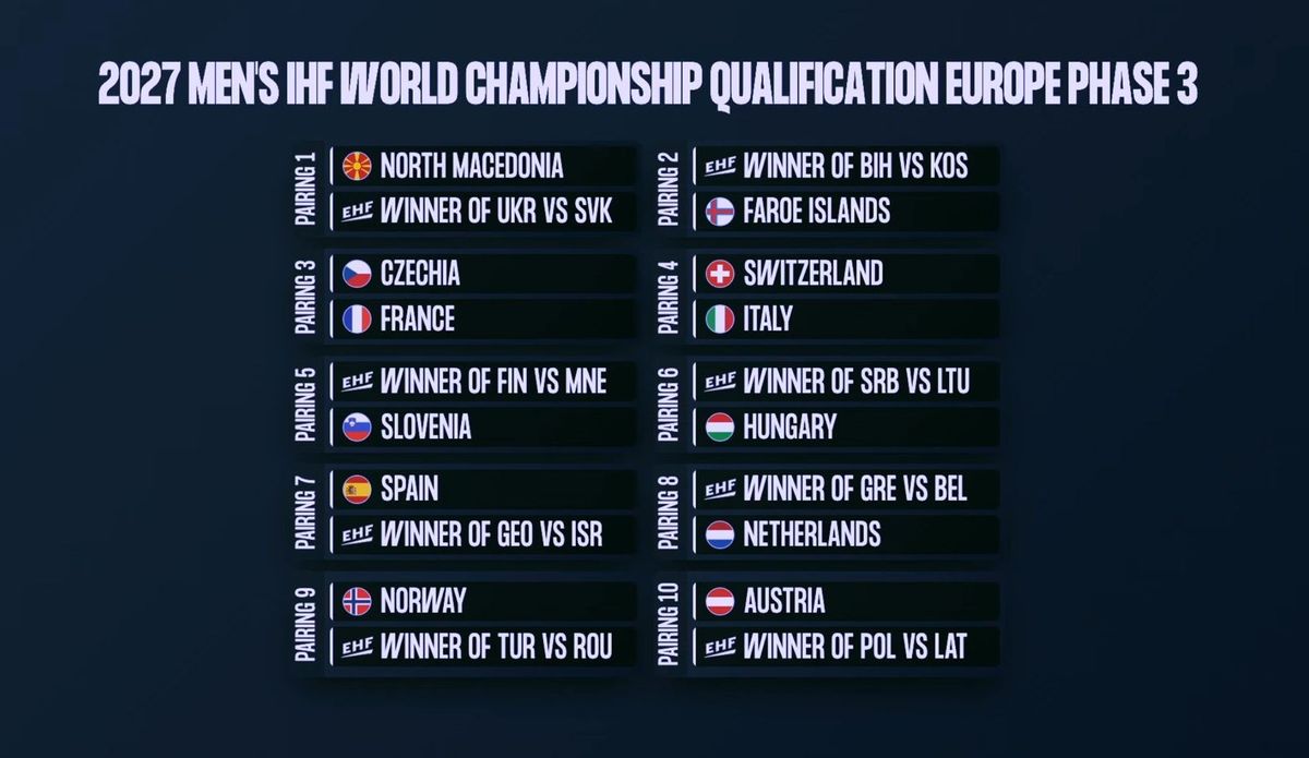 Rozlosování baráže o mistrovství světa házenkářů 2027.