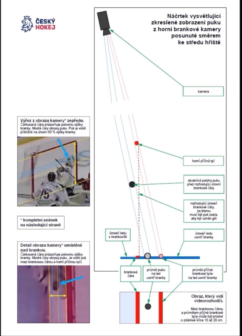 A zároveň zveřejnila metodickou grafiku hokejového svazu, která vysvětluje vliv optického zkreslení zobrazení puku při pohledu z horní kamery.