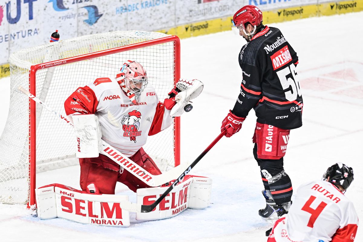 Hokejisté Hradce Králové si nepřišli na brankáře Olomouce Matěje Machovského.