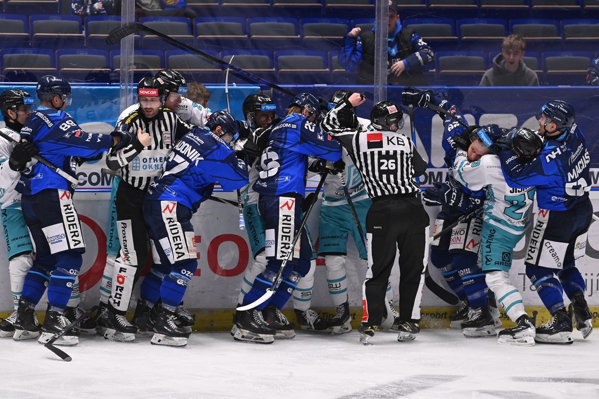 Hromadná šarvátka mezi hráči Vítkovic a Karlových Varů