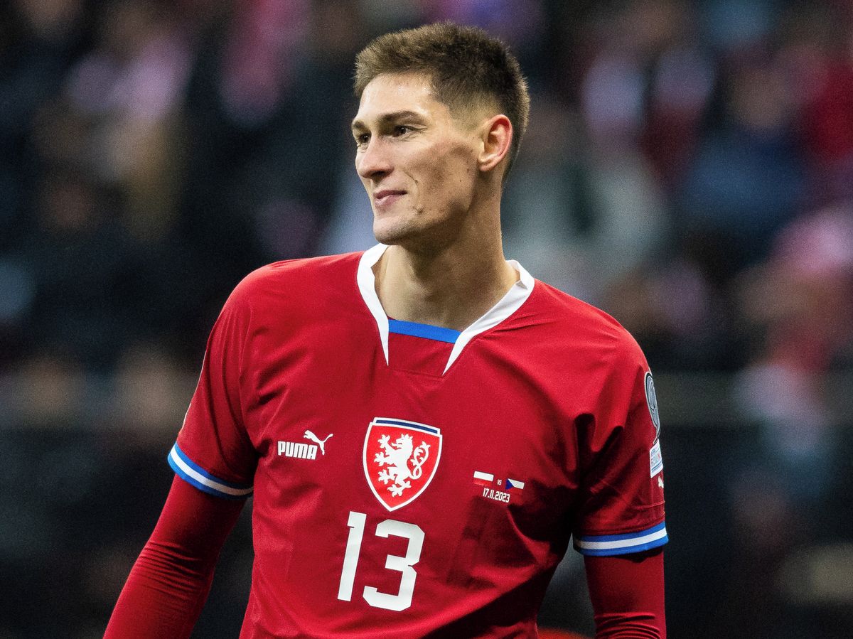 Brankář Plzně Nick Malík vyhlíží střelu přes stínící hráče