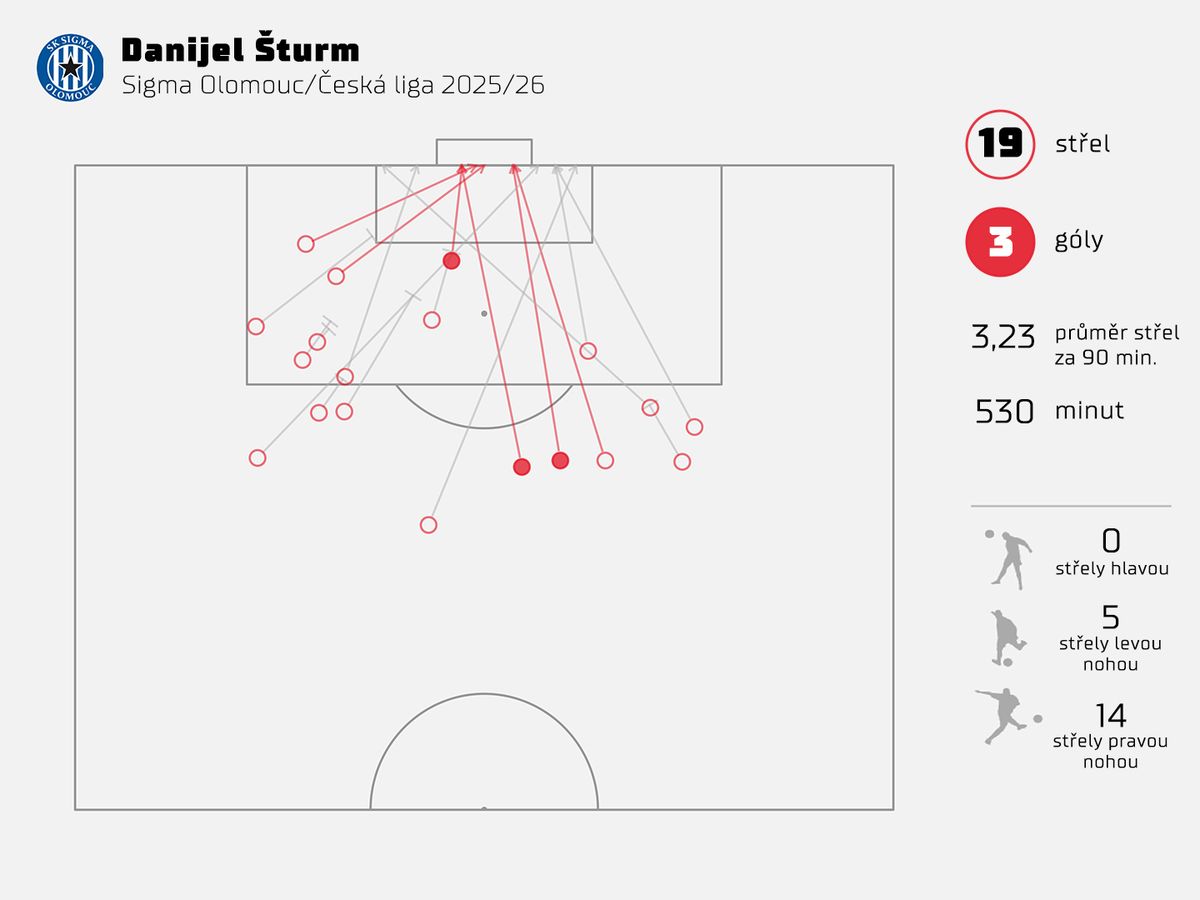 Jen pro ilustraci, po vlastních akcích se v průměru na 90 minut dostává v lize ke střele častěji jen jablonecký Ebrima Singhateh. Ve vytváření šancí pak Šturm nemá v tomto ohledu konkurenci.