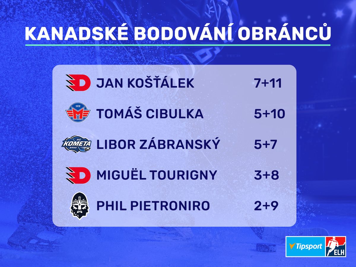 Kanadské bodování obránců Tipsport extraligy