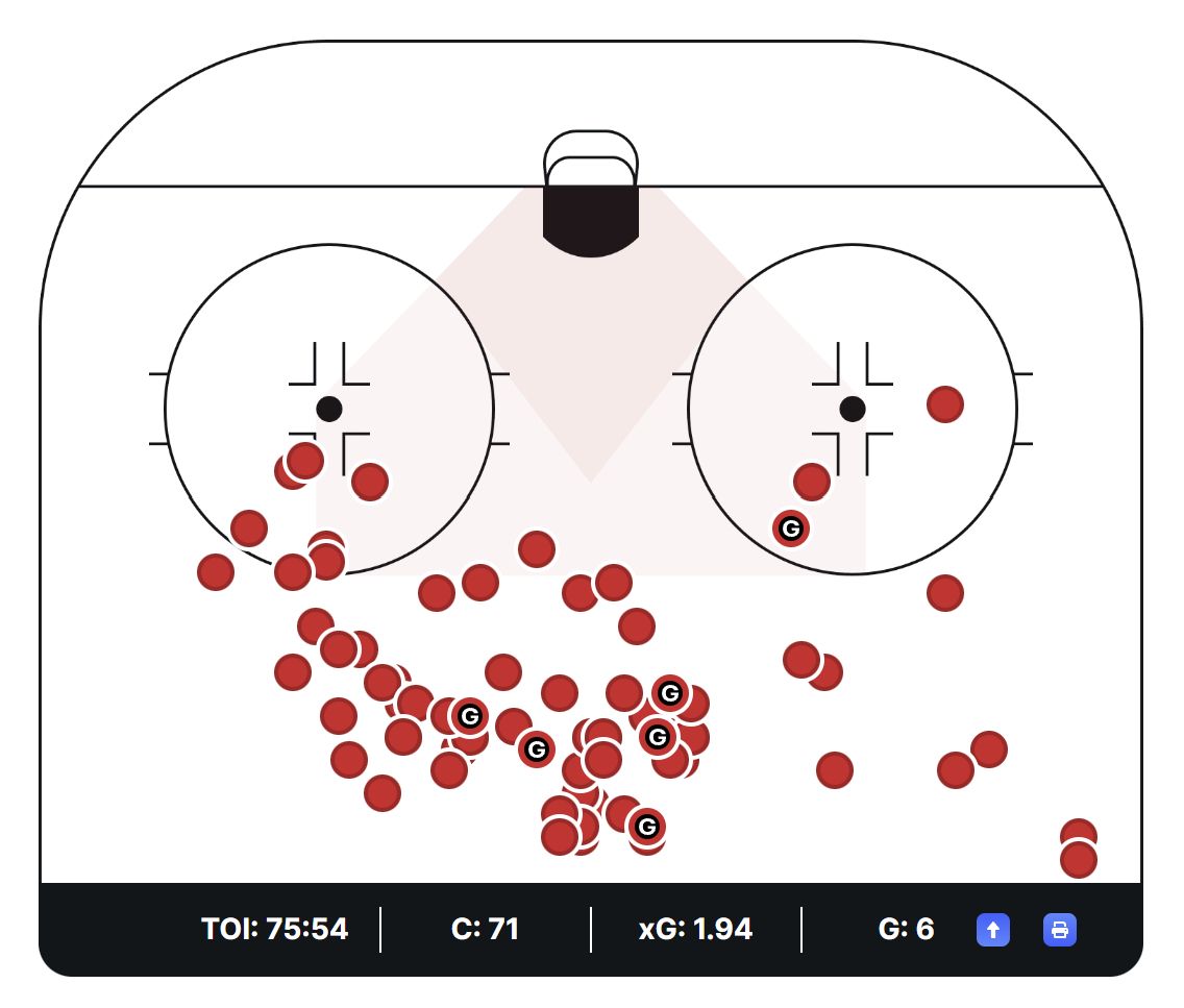 Střelecké pokusy Jana Košťálka v přesilových hrách.