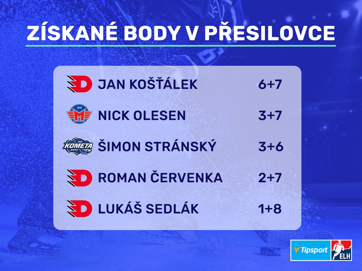 V početních výhodách je letos bezkonkurenční, zapsal v nich už šest gólů a sedm asistencí! Třináct bodů je suverénně nejvíce ze všech extraligových hráčů, včetně útočníků.