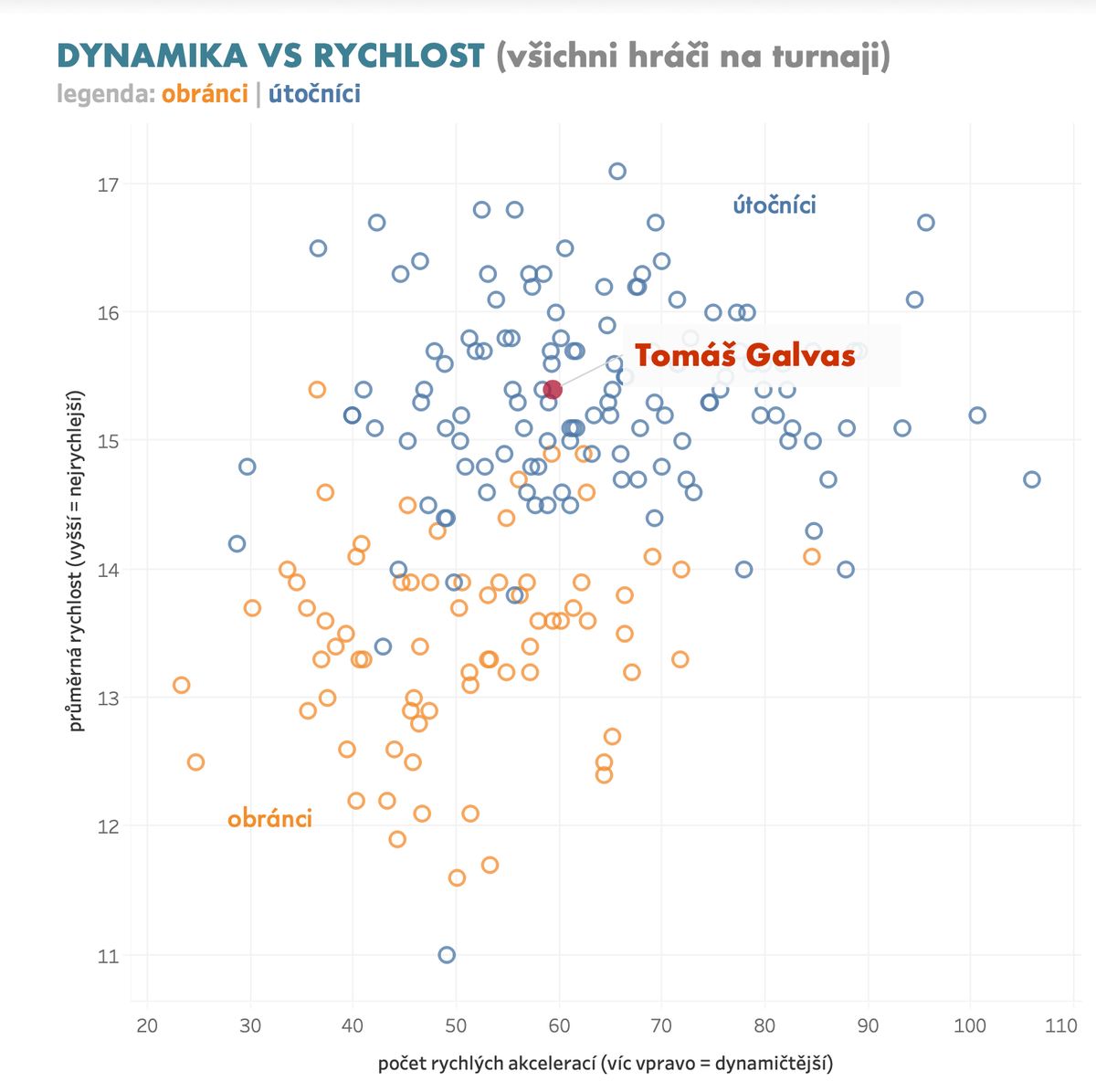 Dynamika vs. rychlost (všichni hráči na turnaji)