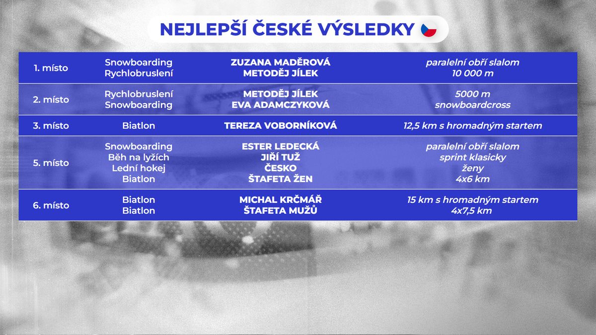 Nejlepší české výsledky na ZOH 2026