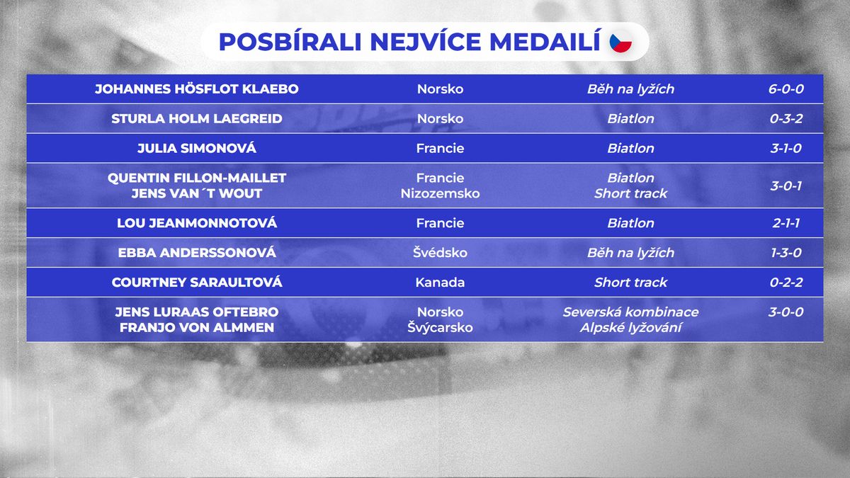 Sportovci, kteří na ZOH 2026 posbírali nejvíce medailí