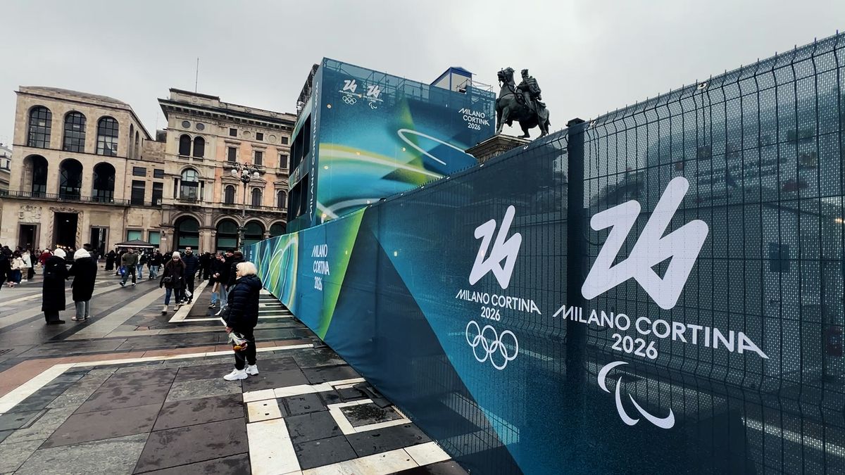 Bezpečnostní zábrany a olympijské billboardy na náměstí před Katedrálou Narození Panny Marie v Miláně, bannery s informacemi a stavba obrovského televizního studia uprostřed náměstí. V Miláně to přípravami na zimní olympijské hry žije.
