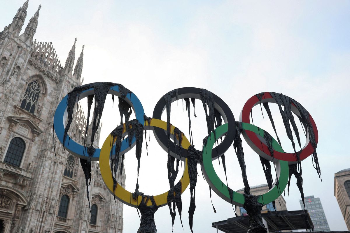 Předolympijský den začal v centru Her protestem organizace Greenpeace. Ekologičtí aktivisté se zaneřáděnými olympijskými kruhy před Duomo di Milano vymezili proti energetickému koncernu ENI, který sportovní svátek sponzoruje. Podle Greenpeace koncern jen za rok produkuje tolik emisí, že to způsobuje tání ledovců v rozsahu 2,5 milionu olympijských bazénů.