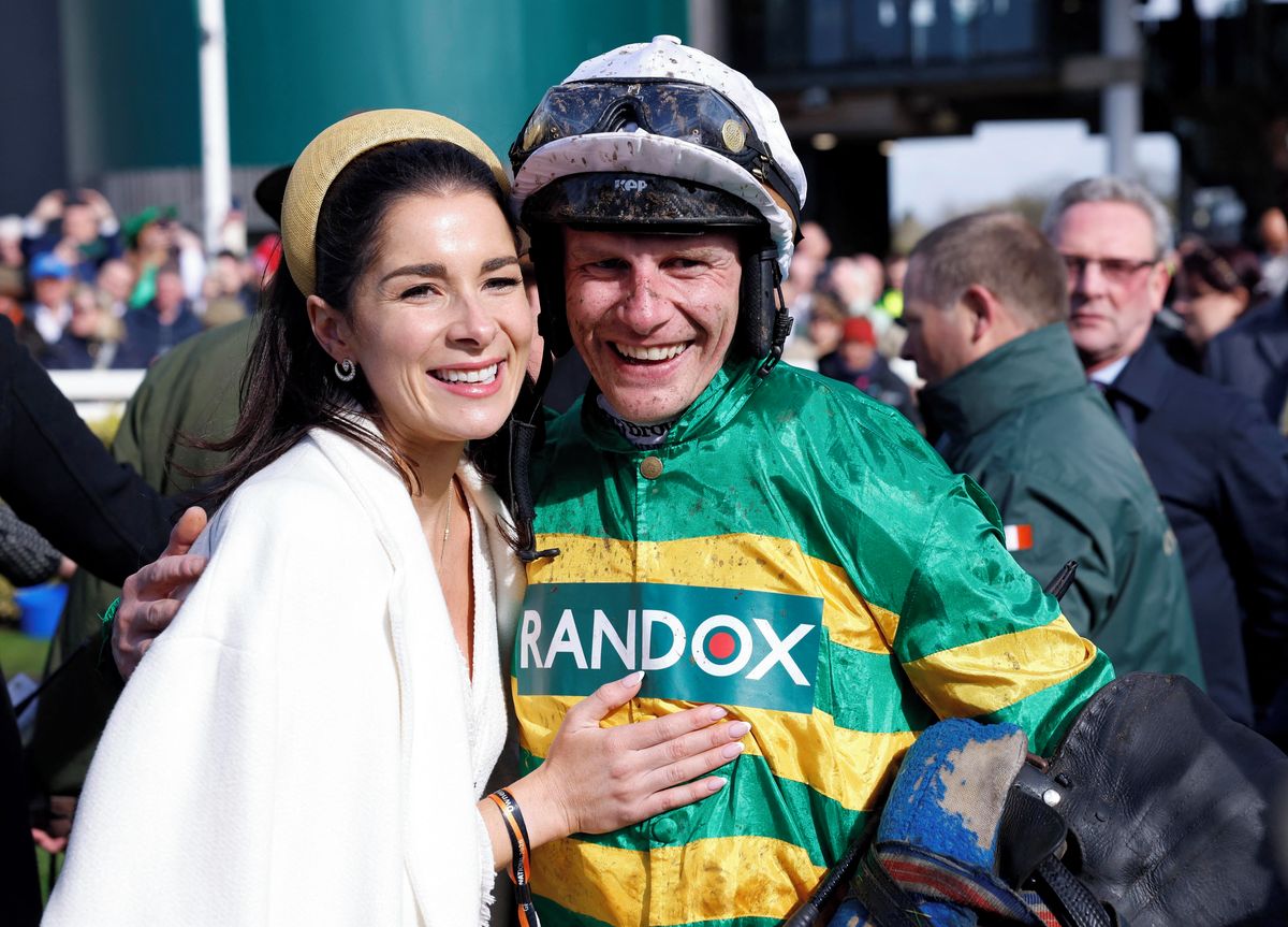 Žokej Paul Townend s přítelkyní po triumfu ve Velké národní.