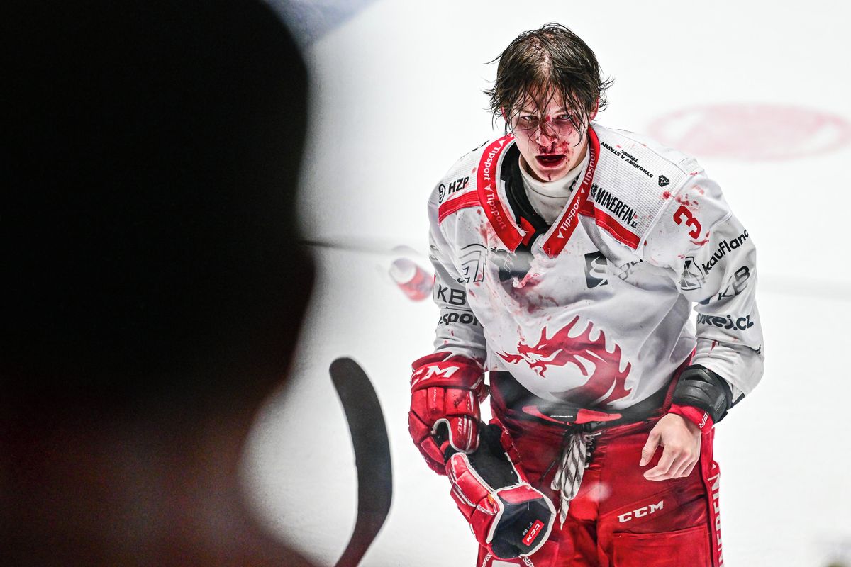 Zkrvavený Petr Sikora po bitce s Patrikem Poulíčkem.