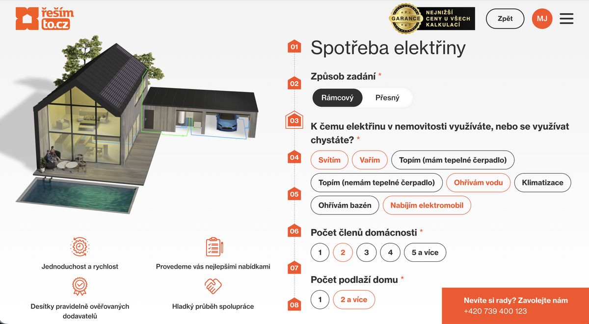 Konfigurátor fotovoltaiky od Řešímto.cz, který potenciálním zákazníkům pomůže lépe se rozhodovat při pořízení vlastní fotovoltaické elektrárny