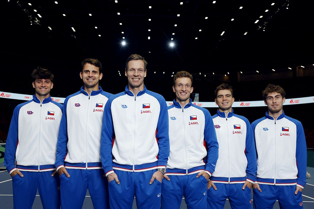 Český daviscupový tým v Jihlavě v čele s kapitánem Tomášem Berdychem.