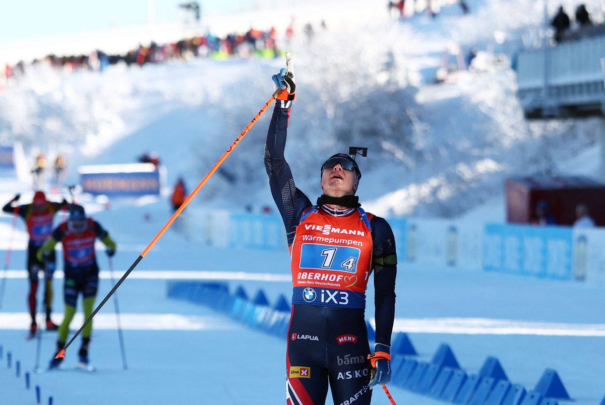 Vetle Sjaastad Christiansen věnuje vítězství norské štafety zesnulému kolegovi Sivertu Guttormovi Bakenovi