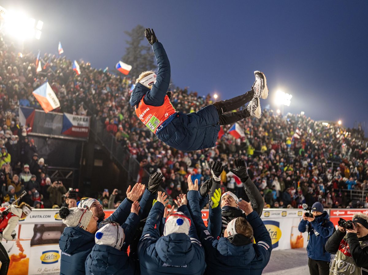 Italy wins, France finish second - but it's this finish by Michal Krcmar that sends the 25,000 in Nove Mesto into party mode after the Mixed Relay 🔥