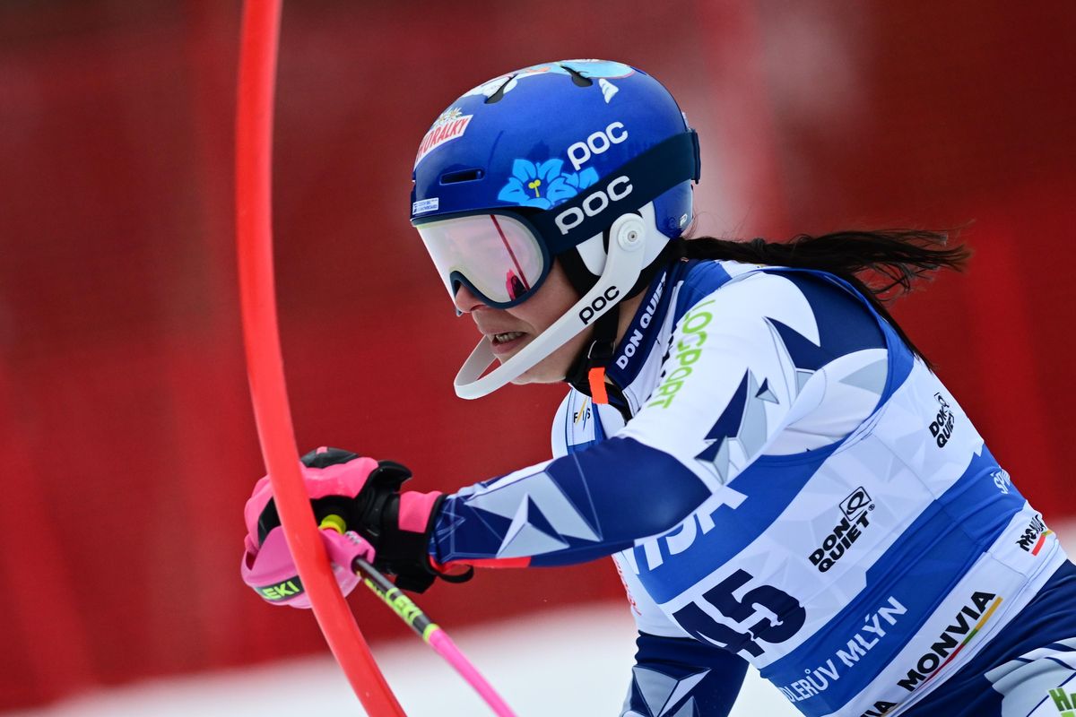 Martina Dubovská na trati slalomu ve Světovém poháru ve Špindlerově Mlýně.